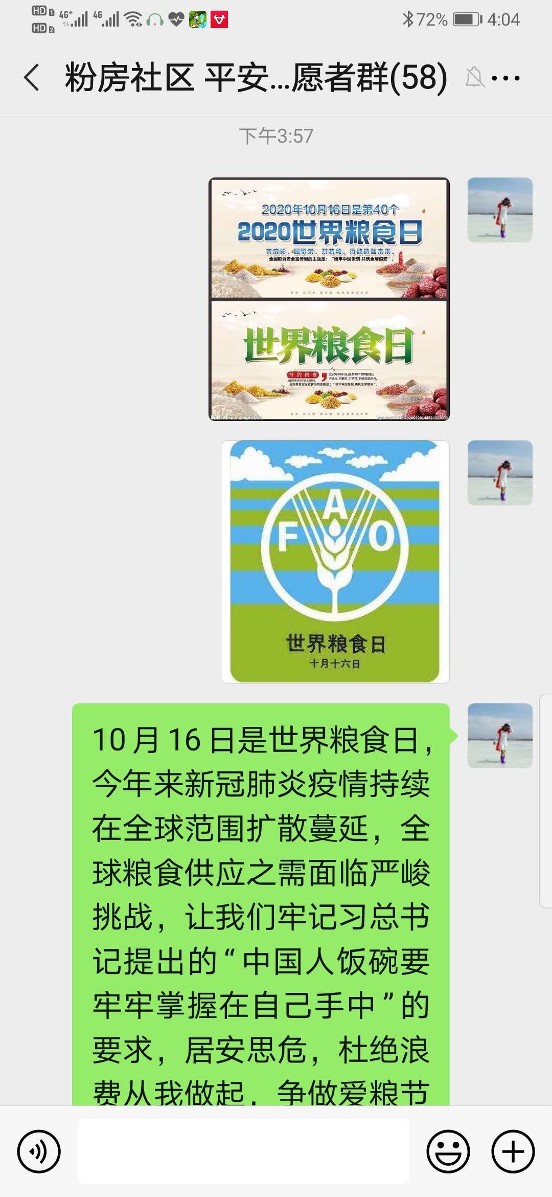 六、壹瓶社区通过“西城社区通”、微信社区居民活动群,向社区居民提出“珍惜粮食、远离浪费”的建议,促进社区居民认识节约粮食的重要意义。妇联工作人员还在微信群内发布了公益短片《一粒米的世界》,社区居民纷纷表示节约粮食,反对浪费,从我做起。