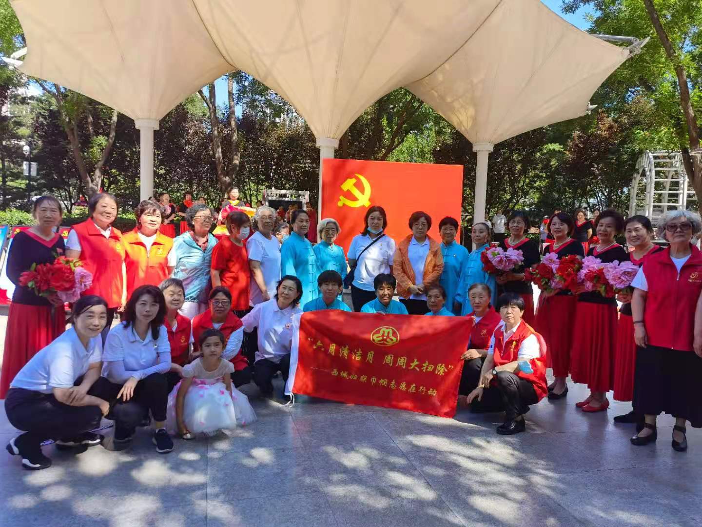 西城区妇女儿童发展中心,认真贯彻落实区委、区政府工作要求,积极响应西城区妇联向全区妇女发出的充分发挥女性在家庭生活和社会生活中的独特作用,从我做起,从每个家庭做起,强化主人翁意识,热爱家园、热爱生活的倡议。于6月19日上午联合德胜街道妇联在裕中西里社区玫瑰园广场,以“庆祝建党百周年 向党说句心里话”活动为契机开展了“六月清洁月 周周大扫除”—西城区妇联巾帼志愿者在行动主题活动暨德胜街道妇联系统“六月清洁月 周周大扫除”巾帼志愿者在行动启动仪式。