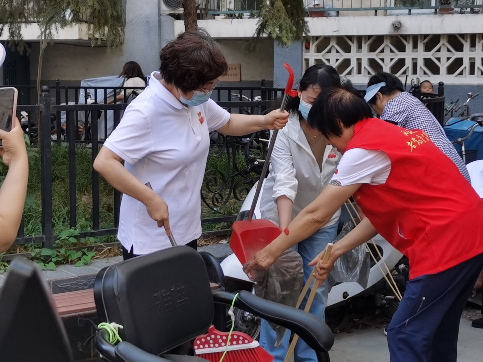 随后150余名党员巾帼志愿者分支部到各个社区参加社区大扫除活动。妇联巾帼志愿者代表与社区志愿者来到了裕中西里社区37号楼进行楼道清扫。志愿者们充分发扬“不怕苦、不怕脏、不怕累”的精神,拿着扫帚、铁锹等工具将车棚内的堆物堆料、废旧家具、废旧无人认领的自行车进行清理,经过一个多小时的清理与打扫,整个楼道、车棚变得焕然一新,得到了广大居民的认可与理解,同时也得到了居民的一致好评。
