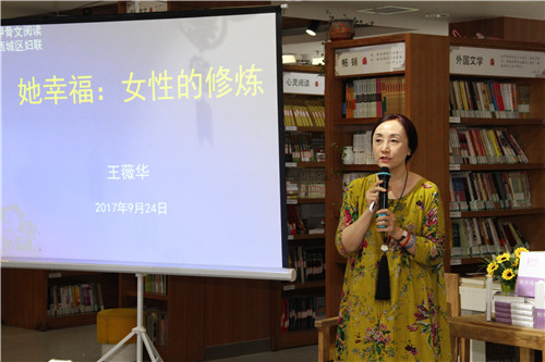 9月24日,西城区妇联主办的《女性家庭社会大讲堂》暨“她幸福,女性的幸福法则”主题讲座,在北京最美社区书店甲骨文·悦读开讲。本次活动主讲嘉宾是积极心理学专家王薇华博士,在两个小时的讲座中,王薇华博士以新书《她幸福》开场,和现场读者共同分享对于幸福的理解。西城区妇联副主席吴洁和五十多名女性一起参与了这堂幸福的大课。