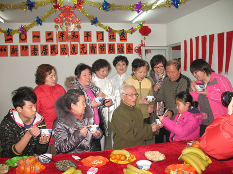 社区“妇女之家”带去了牛奶、香蕉、柑橘、2012年家庭历书、“福”字和2012年挂历。自忠小学的学生们由大队辅导员李主任带队,为敬老院的老人们表演了丰富多彩的书法、唱歌、长笛、舞蹈等节目,同学们表演得非常认真,老人们看得也很开心。为弘扬北京精神,建设温馨社区,让辛苦了一辈子的孤寡老人感受年节的快乐和温馨,今年光明社区妇女之家还为银轩敬老院的老人准备了围巾和手套。自忠小学学生们为老人系上围巾戴上手套,欢快热闹的场面为寒冷的冬季增添了一抹冬日的暖阳。同学们表演完节目,又争先恐后地扶着老人走进所住的房屋,将带来的2012年挂历和家庭历书送到每一位老人的手中,活动现场充满了浓浓的亲情与和谐文明的节日氛围。